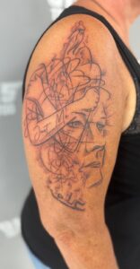 Vrienden van ons komen al jaren bij 015 Tattoo, dus ik ging op pad met mijn ideeën. Nu weet iedereen die mij een beetje kent dat als ik iets wil, ik dat ook NU wil. Ietwat ongeduldig ben ik wel. Dus toen ik mijn ideeën kenbaar maakte, dacht ik: kom maar op…morgen of volgende week ofzo.