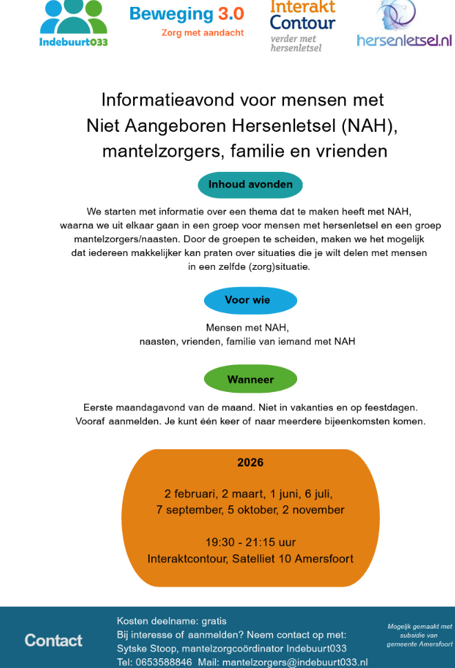 Home » Nieuws » Informatieavond voor mensen met Niet Aangeboren Hersenletsel (NAH), mantelzorgers, familie en vrienden